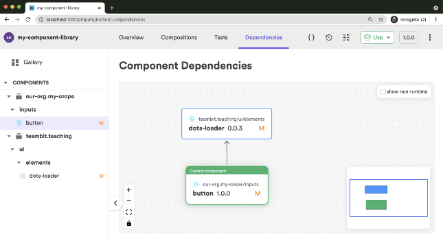 ما از Bit برای توسعه و نسخه بندی چند کامپوننت مستقل در یک فضای کاری واحد استفاده میکنیم. این پلتفرم همچنین نمودار وابستگی را برای هر کامپوننت و برای کل فضای کاری ایجاد میکند.
