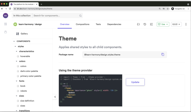 نام پکیج را میتوان در رجیستری منتشر شده یافت. در مثال ما، در صفحه کامپوننت در bit.dev وجود دارد.