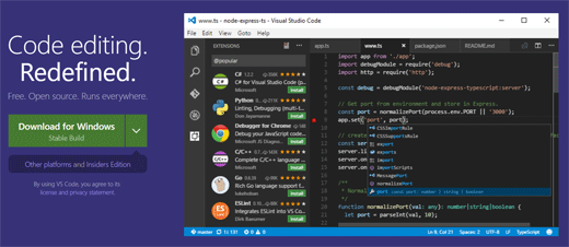Visual Studio Code از اعضای جدید این کدادیتورها محسوب می شود. این کدادیتور متن باز است و برای ساختن اپلیکیشن های تحت وب و Cloud مناسب است. برای بسیاری از کارها Visual Studio Code می تواند جایگزین مناسبی برای IDE محبوب Visual Studio باشد. توسعه دهنده هایی که به استفاده از محصولات مایکروسافت علاقهمند هستند می توانند از این کدادیتور استفاده کنند اما نباید از این کدادیتور چیزی مانند Visual Studio را انتظار داشته باشید.