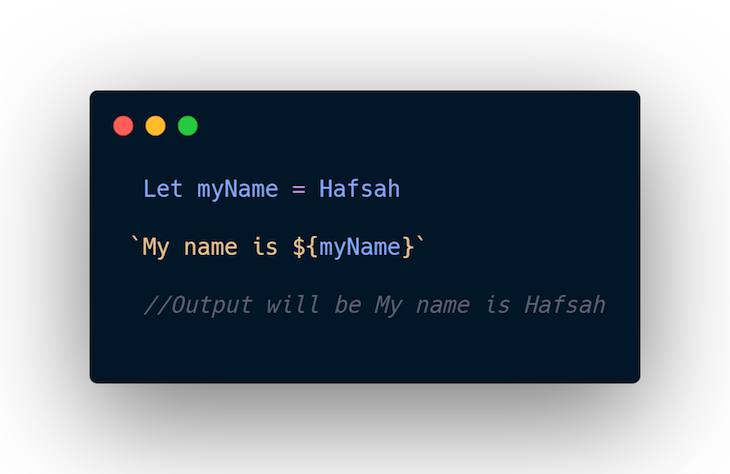 همانطور که در زیر نشان داده شده است، الگوی الفبایی میتواند کد javascript را هنگامی که بعد از یک علامت دلار و داخل آکلاد میآید، ارزیابی کند:
