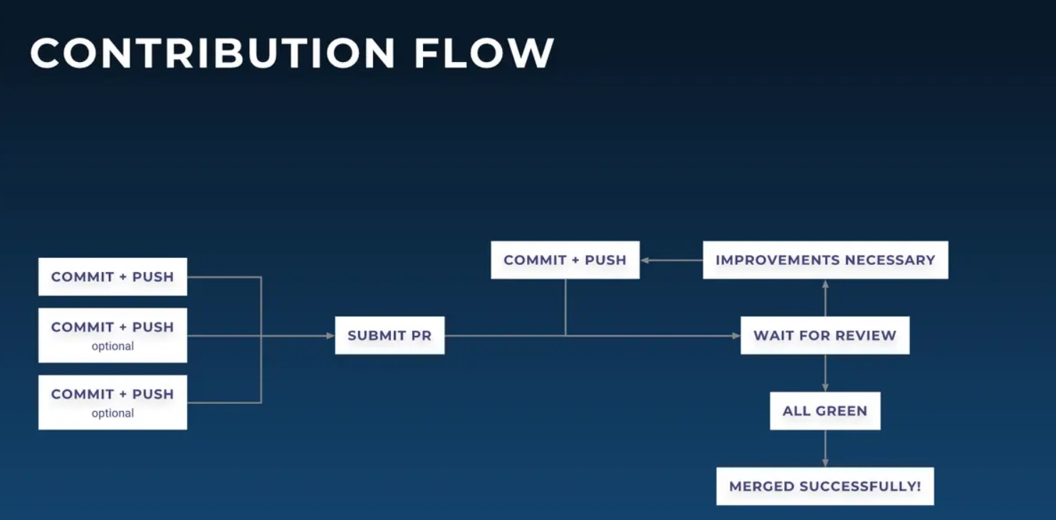 مروری سطح بالا از جریان گام به گام که مشارکتهای متن باز را دنبال میکنند.