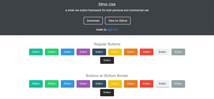امیدوارم بین این دو مجموعه که با یک اسم معرفی شده است سردرگم نشوید. این کتابخانه شامل دکمه های ساده و جذاب سی اس اس به همراه شکل های مختلفی است. نکته مثبت دیگر این مجموعه استفاده از فونت های FontAwesome در دکمه ها است.