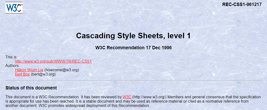 خاصیتها و تواناییهای CSS در اولین نسخه خود در قالب یک سند تکی ارائه شد. منظورمان از این قضیه این است که تمام ویژگیهای CSS از یک راه یکپارچه و کلی ارائه گشتند.