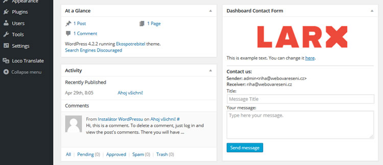 با قرار دادن وبسایت وردپرسی در اختیار مشتری به نظر چیز بسیار جالبی می رسد که در داشبورد وردپرسی وبسایت اطلاعات تماس و آدرس شرکت خودتان را به صورت یک ابزار قرار دهید. این کار دقیقا چیزی است که افزونه Custom Dashboard Widget & Dashboard Contact Form انجام می دهد.