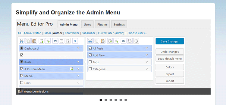 کارکرد این افزونه تقریبا شبیه به Adminimize است. به هر حال این مسئله باعث نمی شود که از ویژگی های افزونه Admin Menu Editor Pro غافل شویم. یکی از ویژگی های حائز اهمیت این افزونه این است که علاوه برا مخفی کردن آیتم های قسمت منو بر اساس نقش های کاربران، می توان به این لیست، آیتم های جدیدی را نیز اضافه کرد. لینک مربوط به این منوها می توانند داخلی و یا خارجی باشند. Admin Menu Editor Pro اجازه می دهد که آیتم های مربوط به منو بصری تر نیز باشند. به این صورت که می توانید برای هر منو، زیر منو تعریف کنید و یا اینکه از آیکون های مختلف استفاده کنید. این افزونه تجاری است اما دارای یک نسخه رایگان نیز هست.