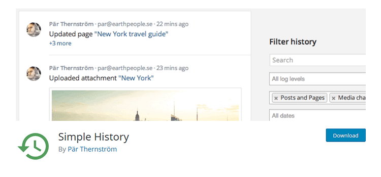 همچنین تمام اطلاعات راجع به فعال سازی افزونه، تغییرات در پروفایل کاربری، ورودها و … را ردیابی می کند. Simple History افزونهای بسیار مناسب برای مدیرانی است که می خواهند روی تمام قسمت های وبسایت به درستی مدیریت کنند.