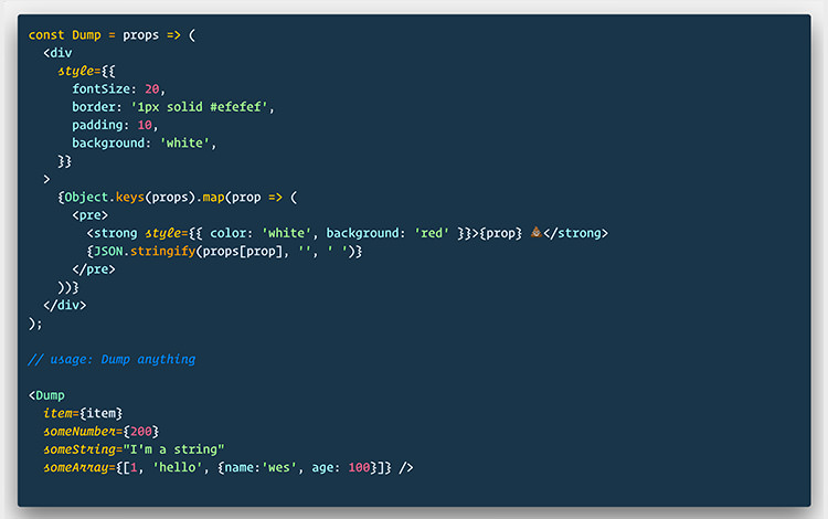 یک کامپوننت React ساده برای نمایش logها در خود مرورگر، به جای کنسول (console.log) آن. این ابزار توسط Wes Bos، یکی از معروفترین نامها در React ساخته شده است.