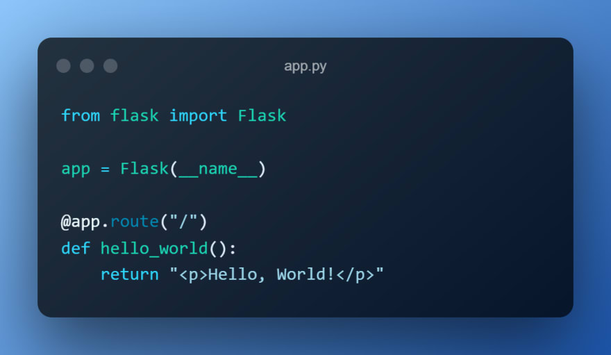 ما میخواهیم یک اپلیکیشن فلسک (flask) را نوشته و آن را کانتینر کنیم. در تصویر زیر میتوانید یک اپلیکیشن فلسک بسیار ساده را مشاهده کنید.