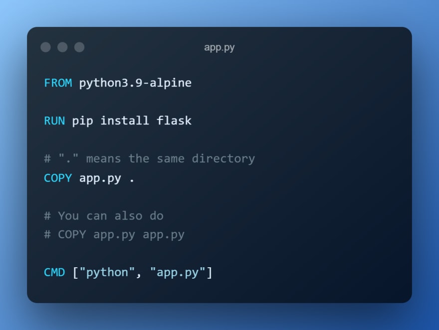 - از COPY برای کپی کردن فایل app.py در کانتینر استفاده کنید