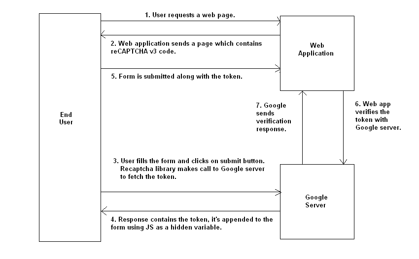 گفته میشود که یک تصویر هزار کلمه دارد. بنابراین باید نگاهی به عکس زیر بیاندازیم تا متوجه شویم که دقیقاً چه چیزی اتفاق میافتد وقتی که reCAPTCHA v3 را در وبسایت خود استفاده میکنید.