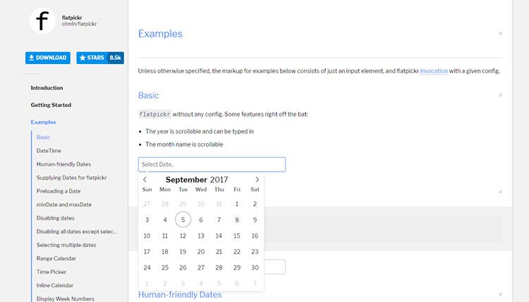 در پایان یک مورد دیگر انتخابگر تاریخ وجود دارد، این مورد نیز مبتنی بر جیکوئری است. این Datepicker فوق العاده است و مستندات زیادی را برای کار با آن برای توسعه دهندگان جدید قرار داده است. از طریق این مستندات می توانید شیوه پیاده سازی و شخصی سازی آن را فرا بگیرید.