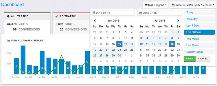 رابط کاربری این افزونه ساده و تمییز است، از طرفی دیگر نیز به صورت پیشفرض سه-ماه در یک آن نمایش داده می شود. این حالت تقریبا شبیه به گوگل آنالیتیکس است با این تفاوت که این مورد کمی کوچکتر است.