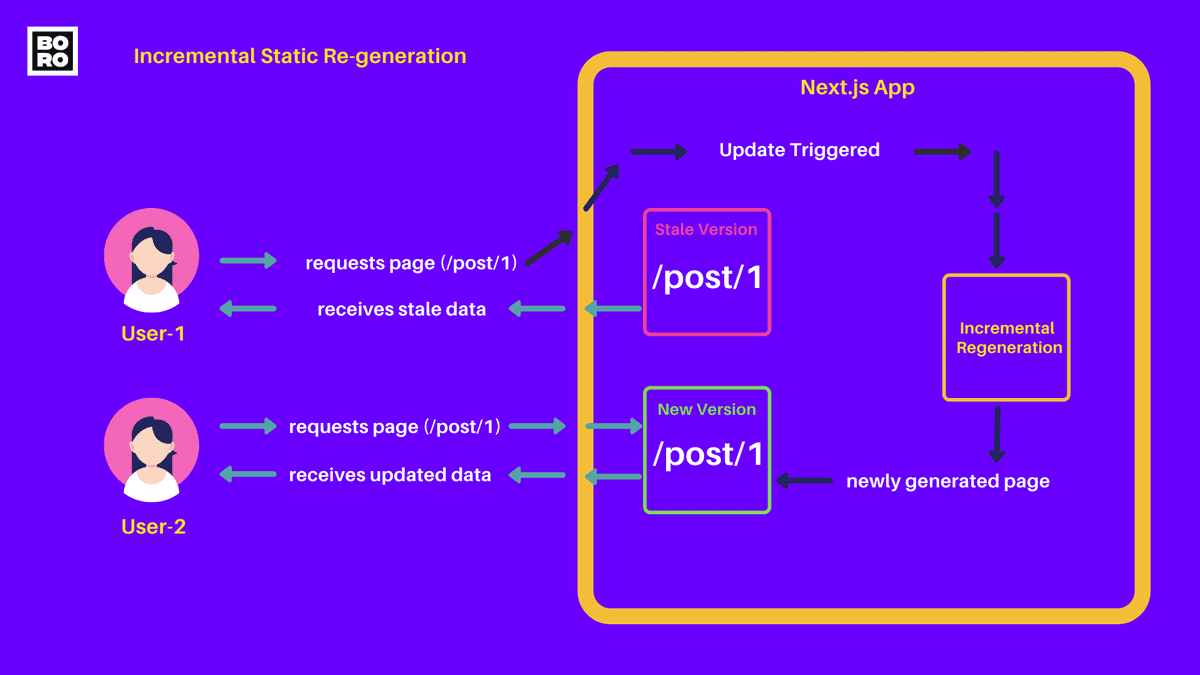 بازسازی استاتیک افزایشی به شما کمک میکند تا بتوانید بدون نیاز به بازسازی کل سایت، از SG به صورت صفحهای استفاده کنید. با استفاده از ISR میتوانید مزایای استاتیک را حفظ کرده و در میلیونها صفحه مقیاسبندی کنید. ISR بسیار قدرتمند بوده زیرا مزایای SSG و SSR را در کنار هم قرار میدهد و راهکاری کارآمدتر و مقیاسپذیرتر را ایجاد میکند.