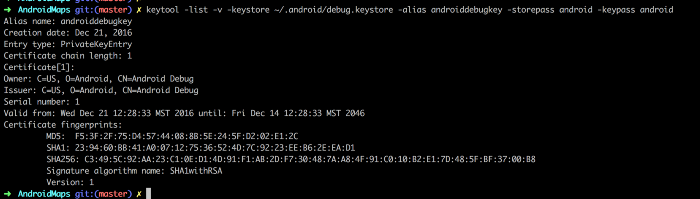 پس از ایجاد پروژه، باید Map SDK را برای آن فعال کنید و همچنین یک Api key برای دسترسی به سرویسها ایجاد کنید. این مورد به SHA1 امضای(sign key) اپلیکیشن شما نیاز دارد. این را میتوانید با اجرای یک دستور در فایل keystore که از آن برای امضای اپلیکیشن استفاده میکنید، بدست آورید: