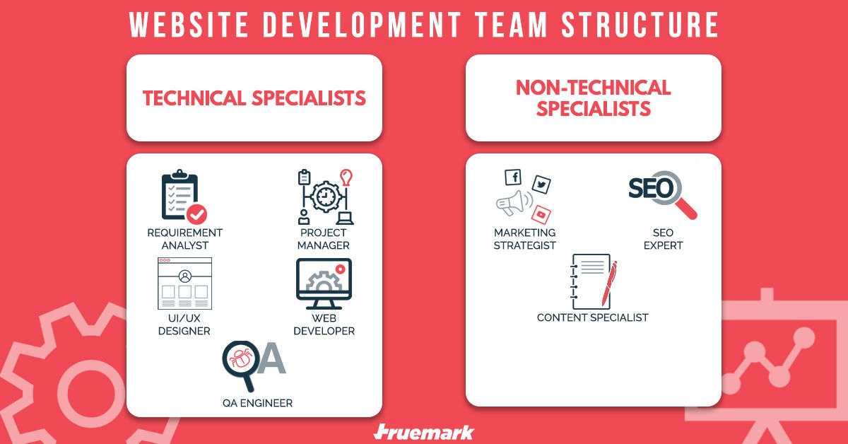 ساختار یک تیم ساخت وبسایت خوب، متشکل از متخصصان فنی و غیر فنی است. متخصصان فنی برتری خود را در جنبههای فنی وبسایت کاملاً نشان میدهند. در حالی که متخصصان غیر فنی تلاش میکنند تا با انجام بازاریابی وبسایت، قرار دادن محتوا و مطالب عالی، وظایف خود را به بهترین شکل انجام دهند.