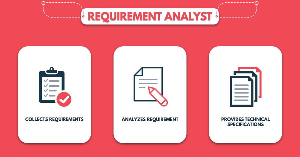 وظیفهی تحلیلگر این است که تمام نیازهای پروژه را آنالیز کند. این متخصص ایدهها و نظرات شما را جمع کرده و آنها را به اطلاعات فنی قابل درک برای تیم توسعه تبدیل میکند. این اطلاعات در ساخت چارچوب پروژهای که تیم توسعه در آن کار میکند، مورد استفاده قرار میگیرد. تحلیلگر الزامات، بستری را برای توسعه محصول تشکیل میدهد.