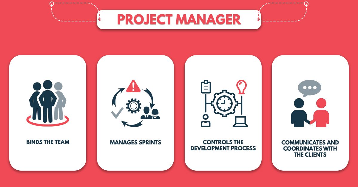 مدیر پروژه همهی اعضا را در تمام مراحل توسعه وبسایت به یکدیگر متصل میکند. او اطلاعاتی را در مورد مشخصات و مهلتهای زمانی تکمیل پروژه جمعآوری کرده و دستوراتی مشخص را بر اساس طرح کلی تعیین میکند. وی پروژه را به بخشهای مختلفی نیز تقسیم خواهد کرد.