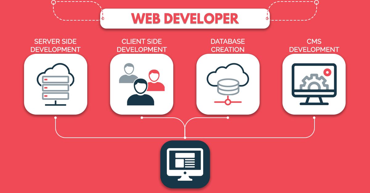 نقش توسعه دهنده در پروژه توسعهی وبسایت قابل مقایسه با سایر وظایف نیست. آنها کسانی هستند که طراحی شما را به یک وبسایت کاربردی تبدیل میکنند و آن را در دسترس تمام افراد قرار میدهند. نقش توسعه دهنده وب را میتوان به سه بخش تقسیم کرد: