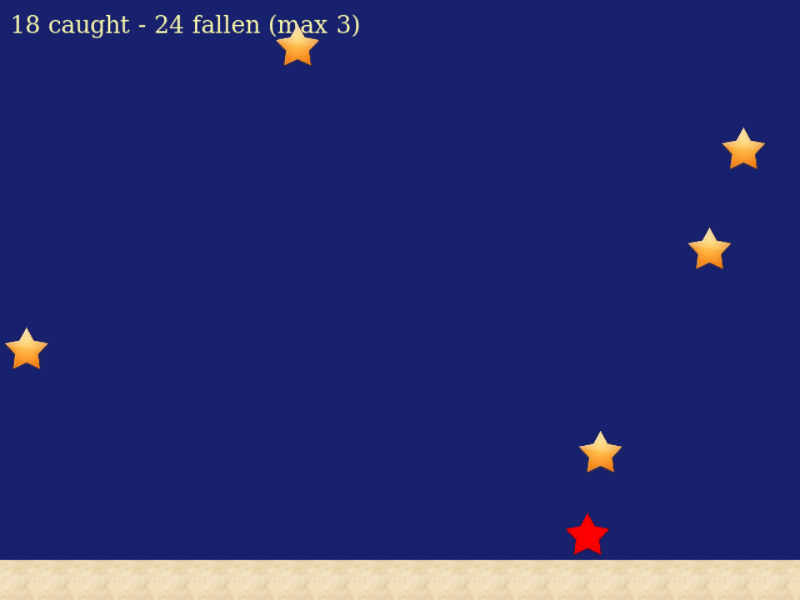 ما یک برنامه ابتدایی ساختهایم. حال وقت آن است که یک سکانس را اضافه کنیم، که اتفاقی در آن پیش میآید. بازی ما ساده خواهد بود: ستارهها بر روی زمین خواهند افتاد، و هدف این خواهد بود که در حد ممکن آنها را بگیریم.