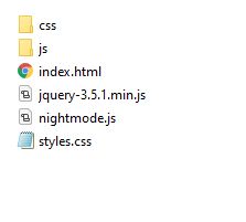همانطور که در اینجا مشاهده میکنید jQuery ،Bootstrap ، styles.css و nightmode.js را در این صفحه قرار دادیم.