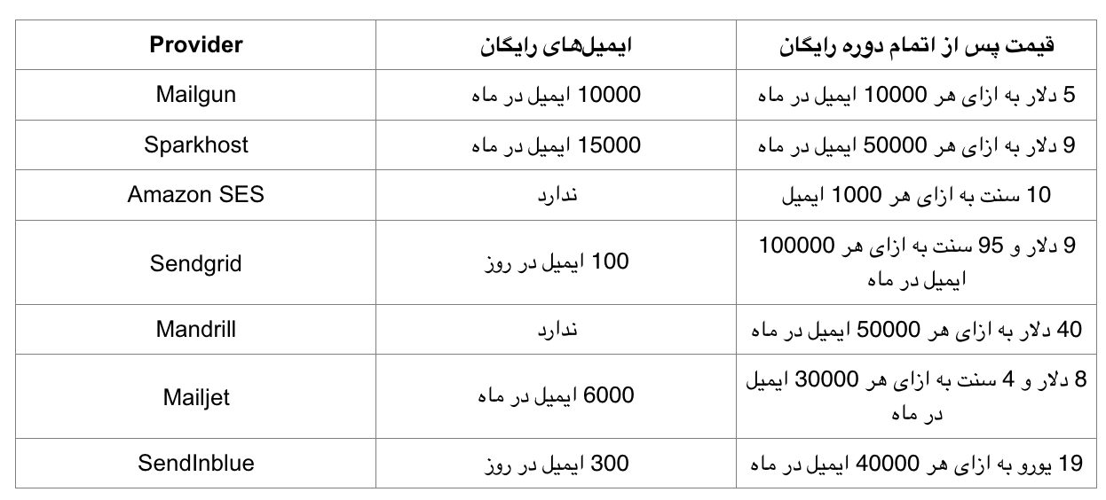 Providerهای شخص ثالث ارسال ایمیل