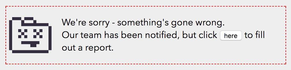 <p>Our team has been notified, but click here fill out a report.</p>