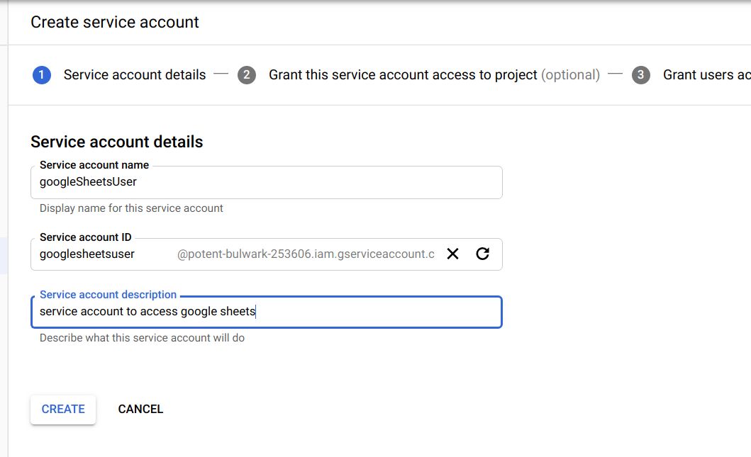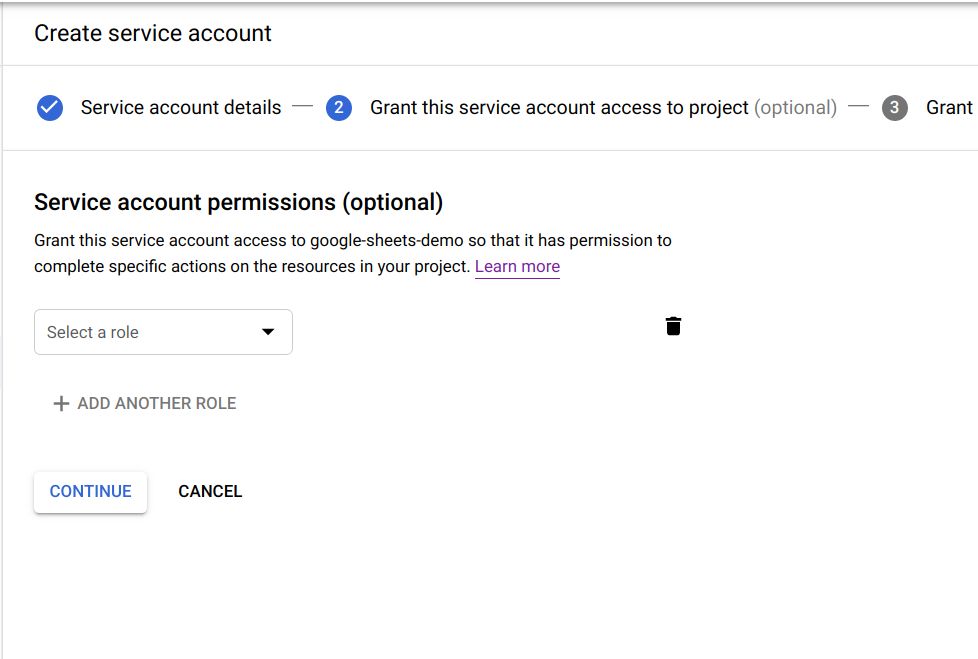 درست مثل یک حساب عادی، حساب سرویس نیز دارای یک آدرس ایمیل است (اگرچه صندوق پستی واقعی ندارد و نمیتوانید پیامی به ایمیل حساب سرویس ارسال کنید). مانند اینکه بتوانید یک صفحه گوگل را با استفاده از آدرس ایمیل با کاربر به اشتراک بگذارید، و این دقیقا همان کاری است که ما قصد داریم در این آموزش انجام دهیم.