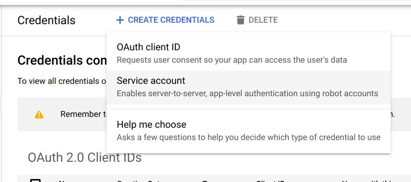 export GOOGLE_APPLICATION_CREDENTIALS=./service_account_credentials.json