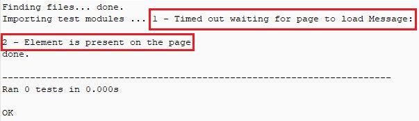 در ()wait_for_page_load جستجو برای div-id owl-example انجام شده است. همچنین از WebDriverWait در ترکیب با ExpectedCondition برای دستیابی به شرایط Explicit Wait استفاده میشود. driver و timeout نیز به عنوان آرگومان منتقل میشوند. سپس صبر میکنیم تا زمان عنصر پایان یابد. در صورت عدم وجود عنصر مورد جستجو یعنی owl-exampl، یک TimeoutException نشان داده میشود. به این ترتیب میزان ماندگاری عنصر را بررسی میکنیم.