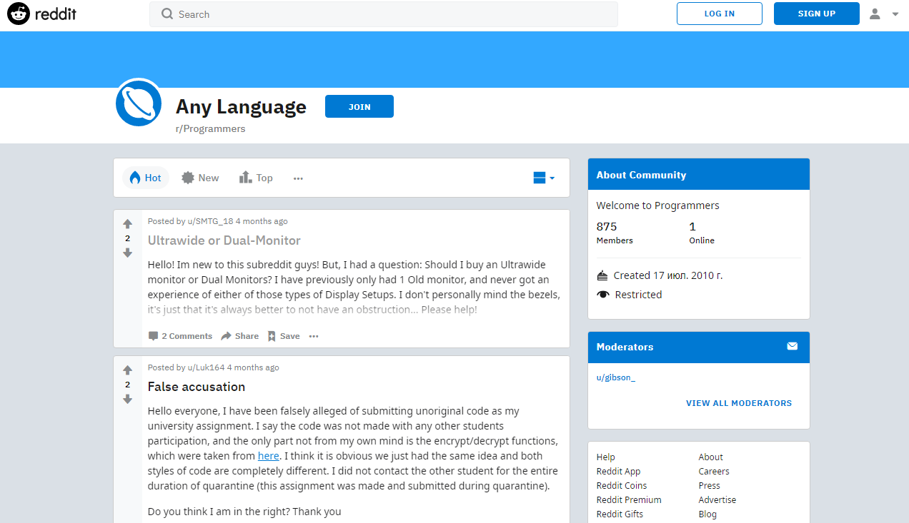 - r/LearnProgramming منبعی ایدهآل برای مبتدیان و کدنویسان معمولی است تا در آن سوالاتی را در رابطه با نحوه یادگیری برنامه نویسی با زبانهای مختلف مطرح کنند.