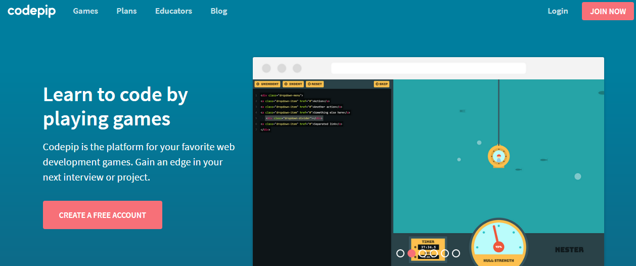 Codepip یکی دیگر از پلتفرمهای متمایزی است که فناوریهای بازی را در روند یادگیری پیادهسازی میکند تا روند یادگیری را تاثیرگذارتر کند.