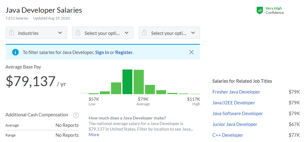 برای اینکه از ابهام جلوگیری کنم و به شما اثبات کنم که در آینده تقاضا برای جذب شما بالا خواهد بود، بر اساس دادههای وبسایت Glassdoor اعدادی واقعی را به شما نشان خواهم داد. میزان حقوق به مدت زمان سرویس، نوع زبان کدنویسی و دادههای جغرافیایی بستگی دارد.