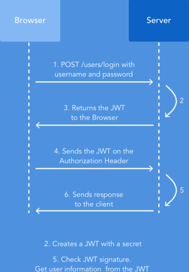 در احراز هویت، وقتی که کاربر با موفقیت با استفاده از مدارک خود وارد میشود، یک JSON Web Token برگردانده میشود، و باید به جای روش قدیمی ساخت یک session در سرور و برگرداندن یک کوکی، به صورت داخلی (معمولا در حافظه داخلی، اما از کوکیها هم میتوان استفاده کرد) ذخیره شود.