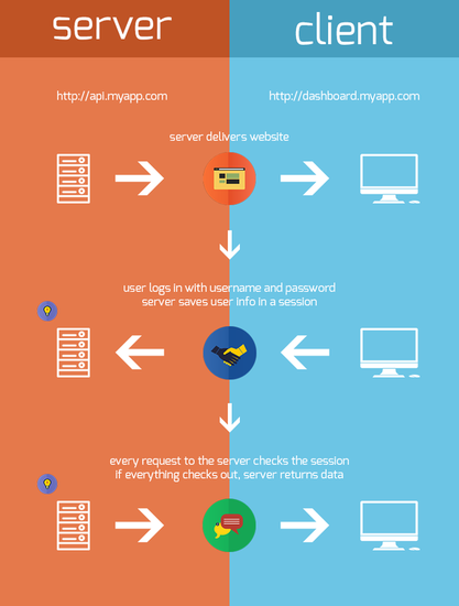 نکته: اگر در حال ساخت برنامههای کوچکی هستید که نیازی به مقیاس بندی برای اجرا بر روی چند سرور ندارند و نیازی هم به اِیپیآیهای RESTful ندارند، sessionها قطعا برای شما به خوبی کار خواهند کرد. و اگر میتوانید از یک سرور مختص برای اجرای ابزاری مانند Redis برای مخزن session خود استفاده کنید، sessionها هم میتوانند به خوبی برای شما کار کنند.