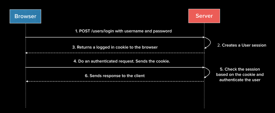 مدارک یک کاربر به عنوان یک درخواست POST به سرور ارسال میشوند. سرور، کاربر را احراز هویت میکند. اگر مدارک کاربر معتبر باشند، سرور با یک کوکی پاسخ میدهد، که بر روی مرورگر کاربر تنظیم شده است و شامل یک آیدی session برای تشخیص کاربر است. در این بخش، چند نکته را توضیح خواهم داد که به عنوان یک پایه برای مقایسه JWTها با session ها در عمل استفاده میشوند.