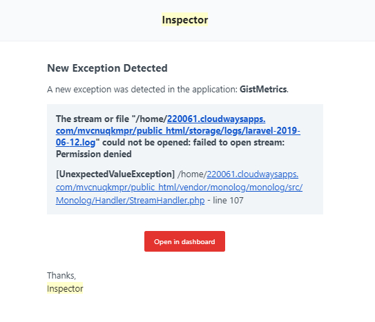 علاوه بر این، در صورت عدم موفقیت HTTP، به شما به صورت real-time در صندوق ورودی هشدار داده میشود تا به خطا نگاه کنید.