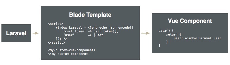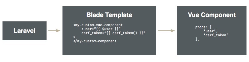 گرچه مرزرهای بین لاراول و Vue در ابتدای کار نامشخصه ولی تنها راهی که هرکدام میتونند درمورد اطلاعات دیگری بدانند اینه که اطلاعات بصورت واضح پاس داده بشه. قالبهای Blade چیزهایی زیادی درمورد اپلیکیشن می دانند اما Vue عملیات رو در لایه دیگر انجام میده, پس فقط چیزهایی که بهش بگیم رو میدونه.