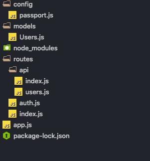 حال ما به یک دایرکتوری api در داخل دایرکتوری routes نیازمندیم که در داخل آن نیز یک فایل index.js قرار دارد: