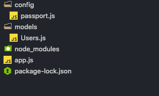 یک دایرکتوری جدید با نام config ایجاد کرده و یک فایل جاوااسکریپتی با نام passport.js را در آن قرار دهید. حال محتویات زیر را به آن اضافه نمایید: