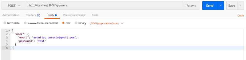 برای ارسال درخواست به سرور من از Postman استفاده میکنم. سرور ما قالب جیسان زیر را میپذیرد: