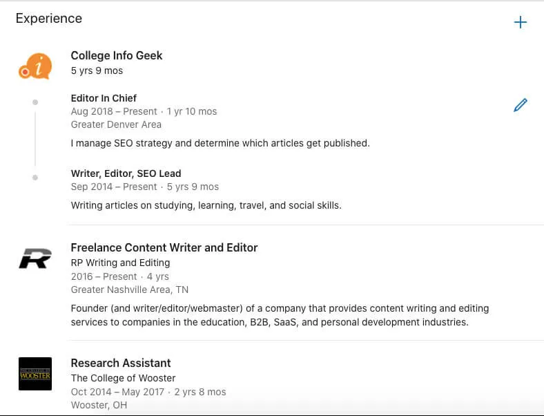 - هماهنگی با رزومه: اطلاعات این بخش باید با رزومه کاری شما همخوانی داشته باشد، اما میتوانید در لینکدین جزئیات بیشتری ارائه دهید.
