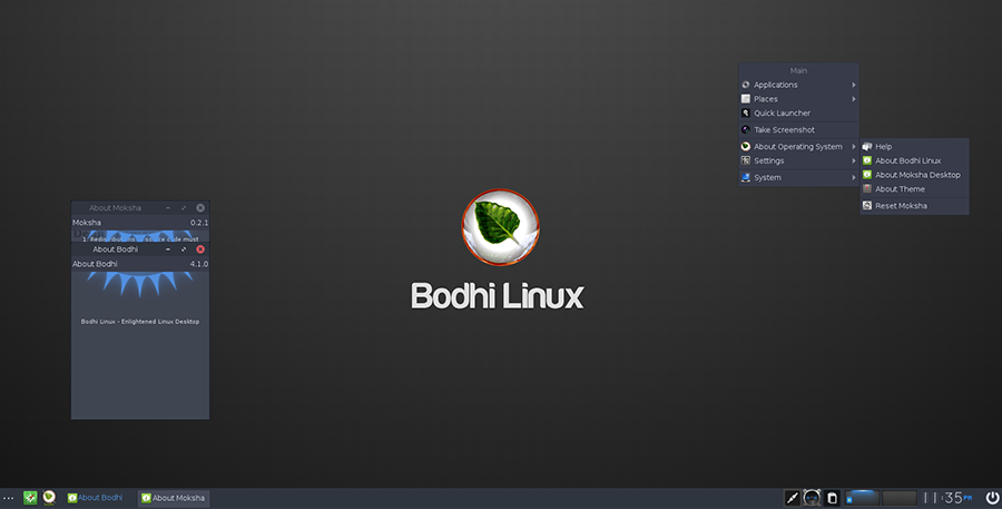 Bodhi یک نسخه دسکتاپی است که سبک خاص خود را دارد و همین خاص بودن باعث شده است محبوبیت ویژهای نزد کاربران داشته باشد. Bodhi اولین توزیع لینوکس است که ویژگی انلایتنمنت را بهطور پیشفرض در خود جای داده است. برای کاربرانی که به دسکتاپهای مدرنی همچون GNOME یا KDE عادت کردهاند، Bodhi توزیع بسیار سبک و سریعی بوده که همچنان پنجرههای سبک قدیمی و مربعیشکل خود را حفظ کرده است. با این حال، ورود به آن بهسرعت انجام شده و روی ماشینهایی با معماری 32 بیتی و 64 بیتی قابل نصب است.