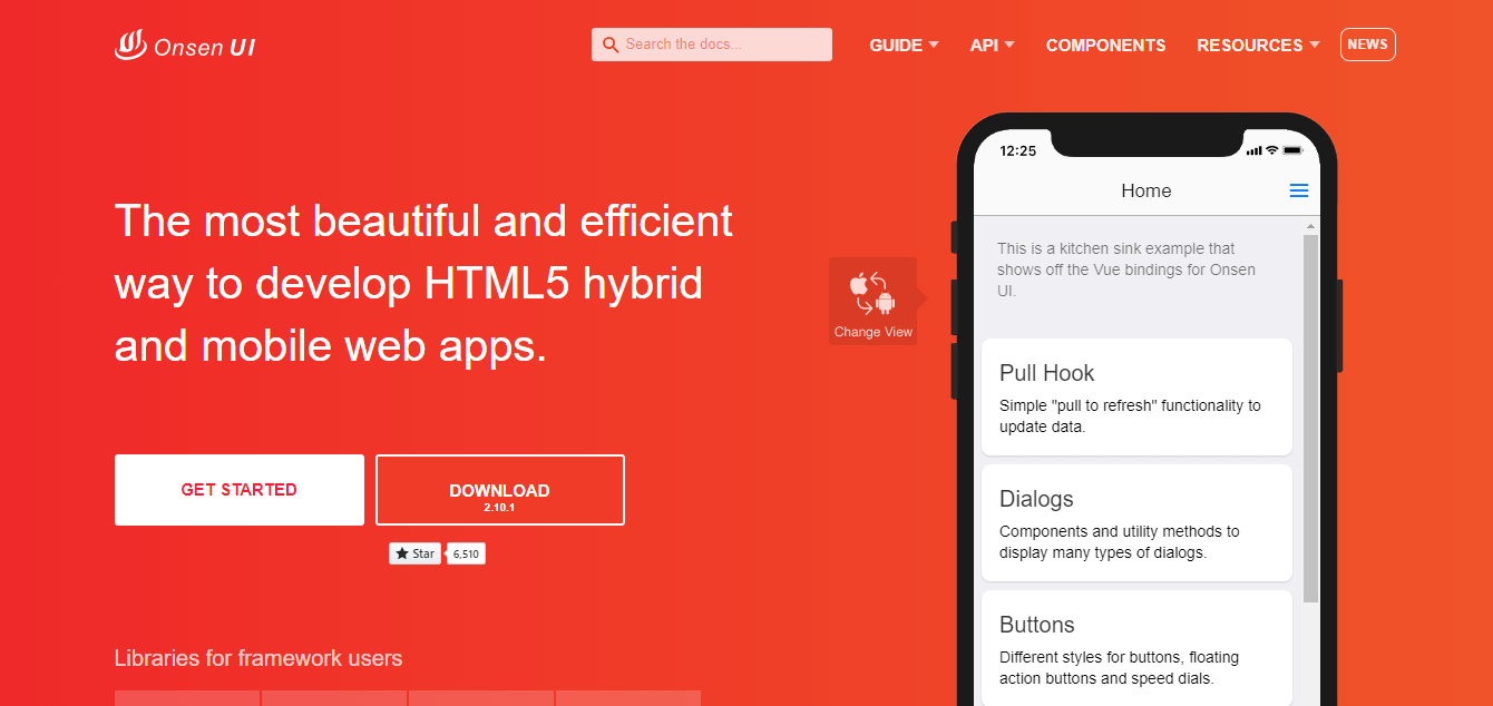 Onsen UI یک فریمورک هیبریدی جدید است که میتوان آن را یک رقیب بسیار مهم برای Ionic دانست. در این فریمورک، تعداد بسیار زیادی کامپوننت آماده وجود دارد که میشود از همگی آنها به صورت رایگان و بدون محدودیت استفاده کرد. استفاده از این فریمورک بسیار ساده است و انعطاف خوبی دارد.
