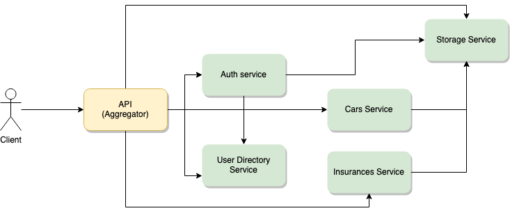 به تصویر بالا نگاهی بیندازید. این شماتیک سعی میکند یک میکروسرویس بیمه خودرو را به تصویر بکشد. کلاینت فقط به API اصلی اهمیت میدهد، برای همه اهداف تنها میکروسرویس موجود است و جایی است که تمام برنامههای کلاینت به آن اشاره میکنند. با این حال در پشت پرده میبینید که چندین API منفرد وجود دارد که با هم کار میکنند و توسط aggregator ترتیب بندی شدهاند.
