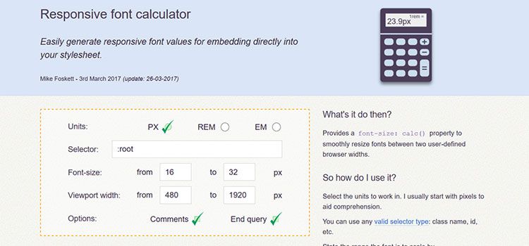 Responsive font calculator - یک ابزار برای محاسبه اندازه فونت برای وبسایت های رسپانسیو