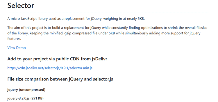 Selector یک کتابخونه ای میکرو برای جاوا اسکریپت که میتونه جای جی کوئری رو در موارد select کردن بگیره حجم این ابزار تنها 5 کیلو بایته