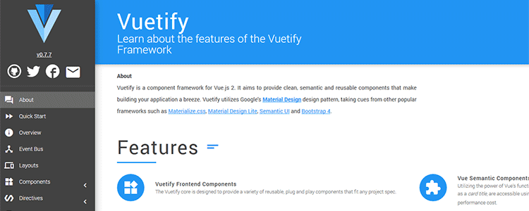 Vuetify - یک سری کامپوننت های آماده برای Vuejs 2.0 که بسیار تمیز ، جالب و کاربریست که با استفاده از آن به سادگی میتوانید اپکلیشن های خود را ایجاد کنید .