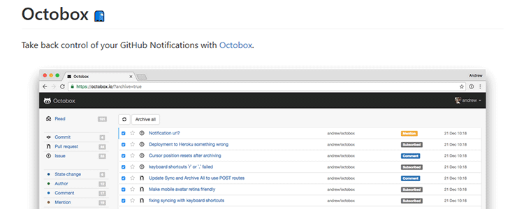 Octobox - گرفتن و مدیریت بر Notification های گیت هاب