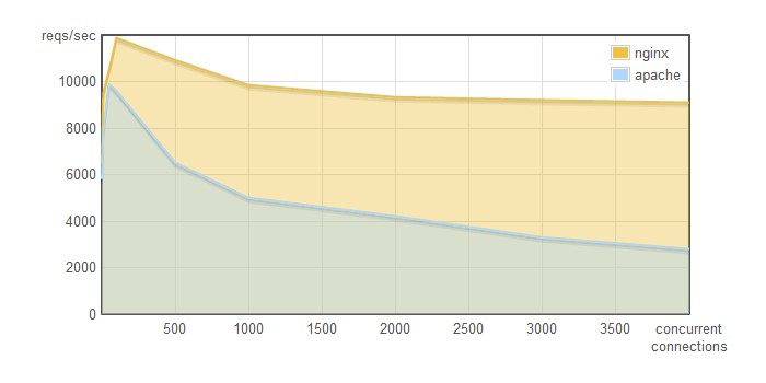 اگر در نظر دارید یک وب سایت با تقاضای بسیار بالا مثلا هزاران بازدید در روز را میزبانی کنید، خوب است بدانید که nginx میتواند چهار برابر Apache اتصالات همزمان را پردازش کند. این امر دو مزیت به همراه دارد: