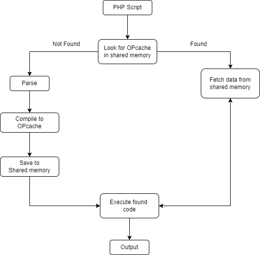 در حالیکه اگر شما OPcache را روی سرور خود فعال کرده باشید این پروسه تنها یک بار انجام شده و با هر درخواست تنها اسکریپتهای از پیش کامپایل شده لود خواهند شد. تنها زمانی این اسکریپتهای از پیش کامپایل شده نیز حذف و جایگزین خواهند شد که در سورس کد اصلی تغییراتی اتفاق بیافتد.